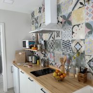 habitación y baño en 56 m2. En la planta superior, la composición es un salón comedor de 14,10 m2, cocina de 5,20 m2,